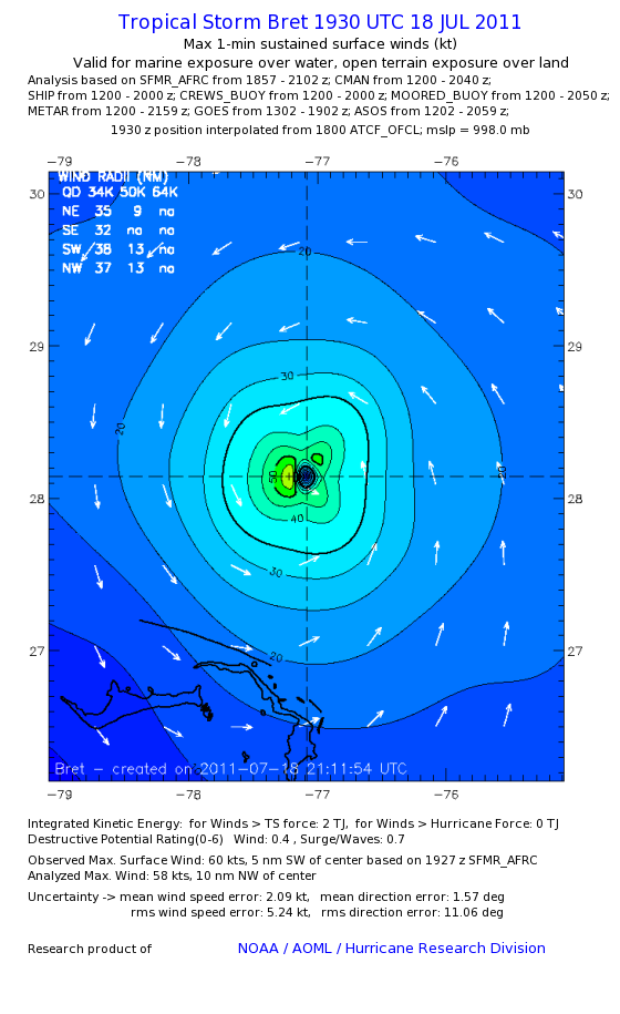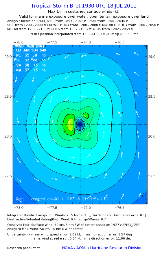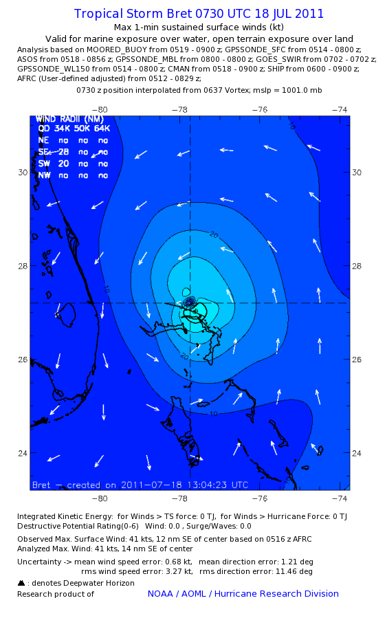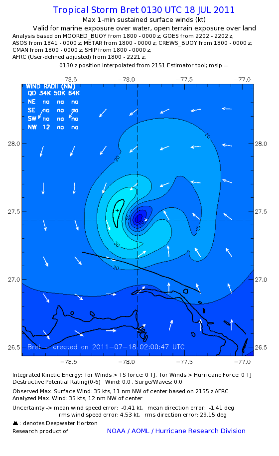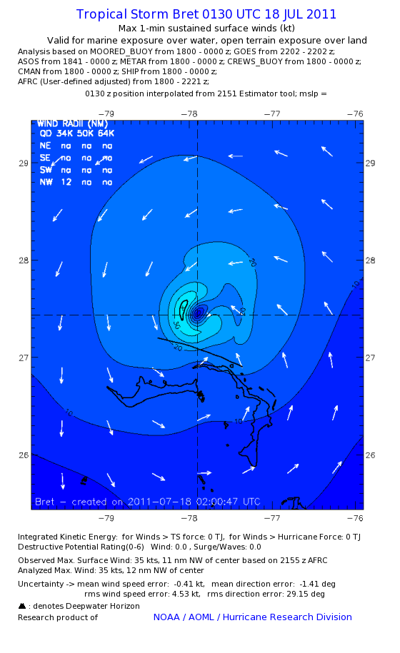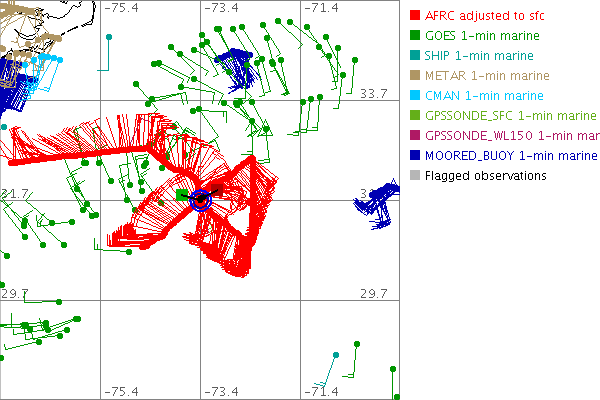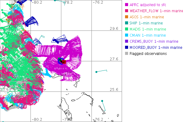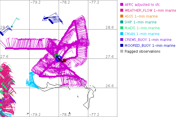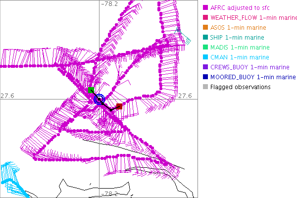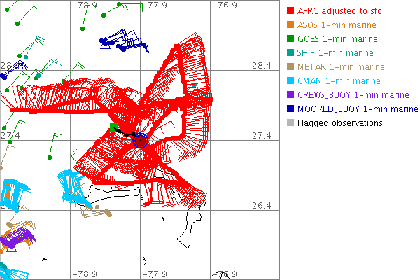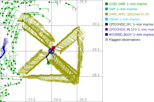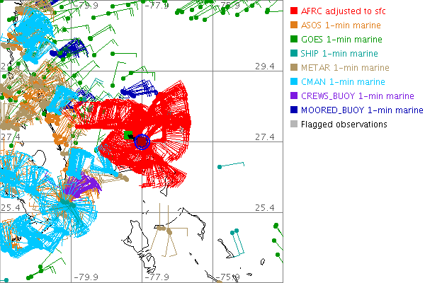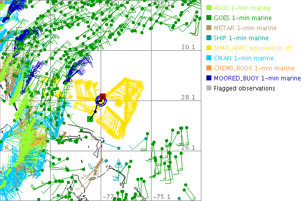 As a public service we are hosting the legacy H*wind archive that was formerly available through NOAA. Most of the archive was conducted in real-time so data collected after the analysis time were not available. Methods used to conduct the analyses evolved over the years. Grid spacing is on the order of 6 km and maximum domain size varies but is typically 8 x 8 degrees. There are known errors in some of the data coverage, mapping, and gridded products. For more information on the archive please go here. For realtime and post storm analysis of the 2014 season and a revised historical archive go here. |