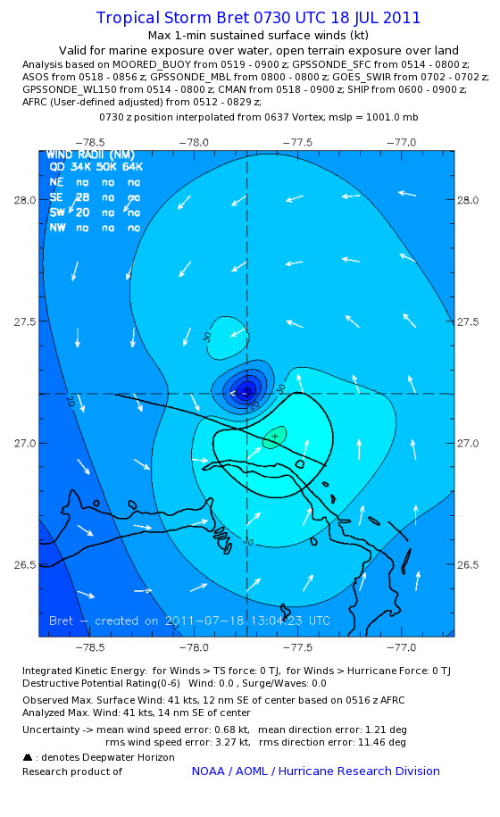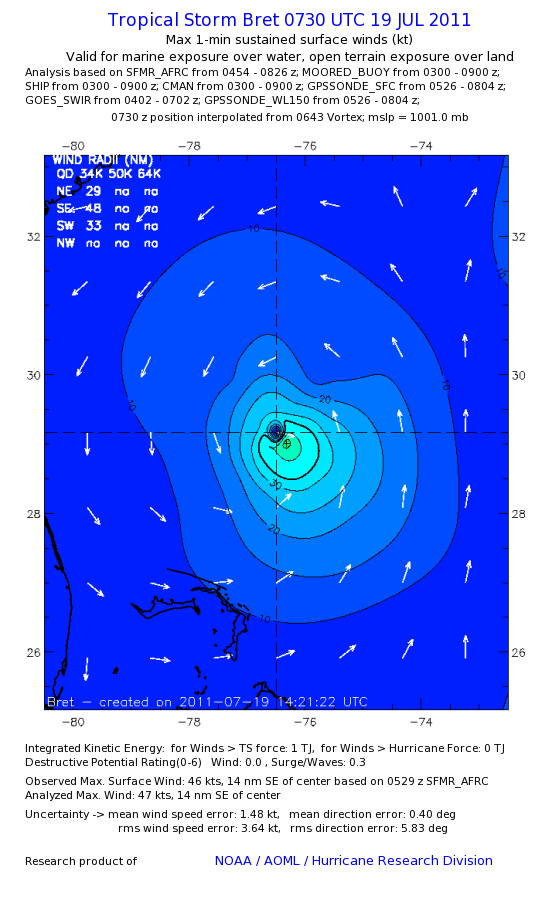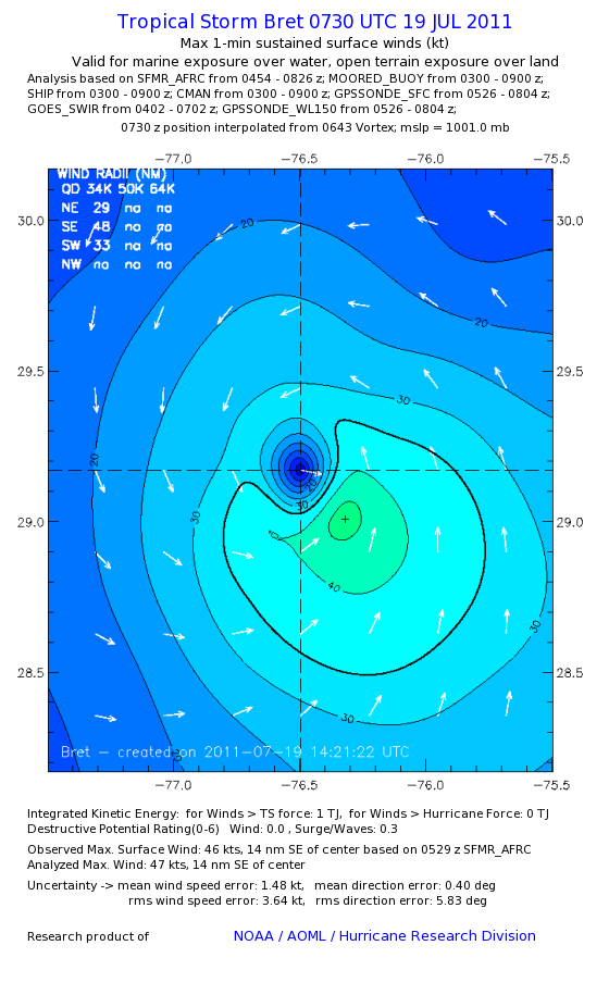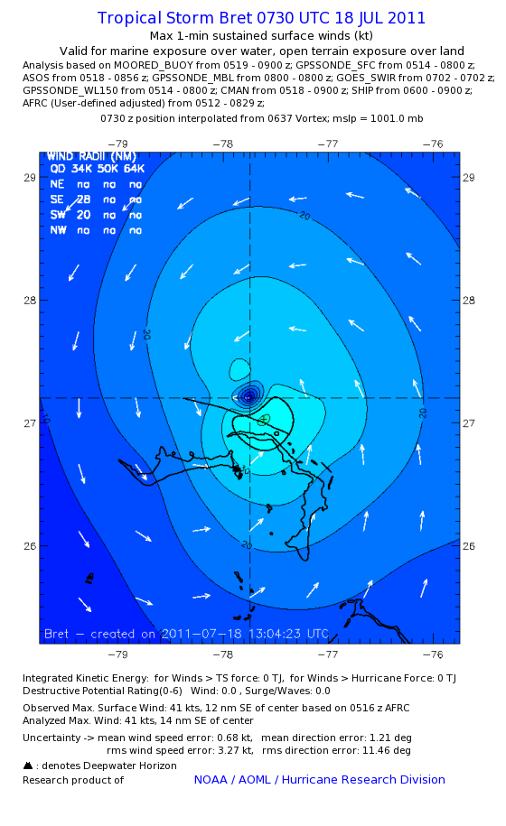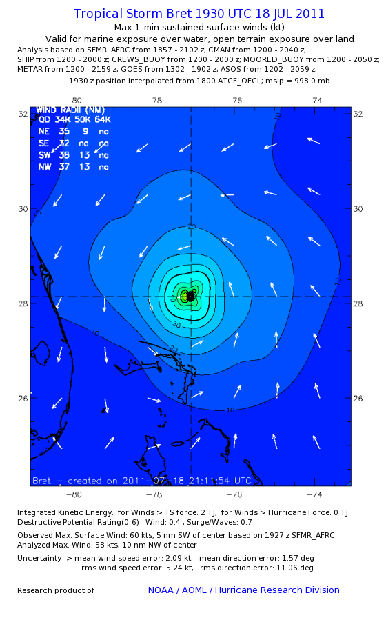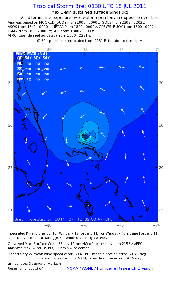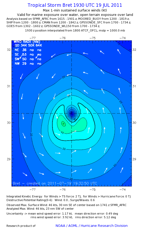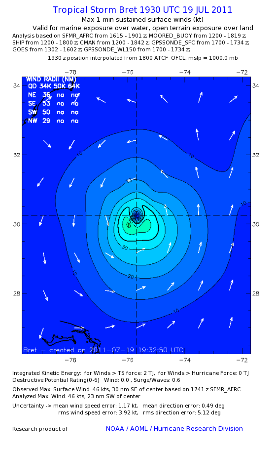 As a public service we are hosting the legacy H*wind archive that was formerly available through NOAA. Most of the archive was conducted in real-time so data collected after the analysis time were not available. Methods used to conduct the analyses evolved over the years. Grid spacing is on the order of 6 km and maximum domain size varies but is typically 8 x 8 degrees. There are known errors in some of the data coverage, mapping, and gridded products. For more information on the archive please go here. For realtime and post storm analysis of the 2014 season and a revised historical archive go here. |