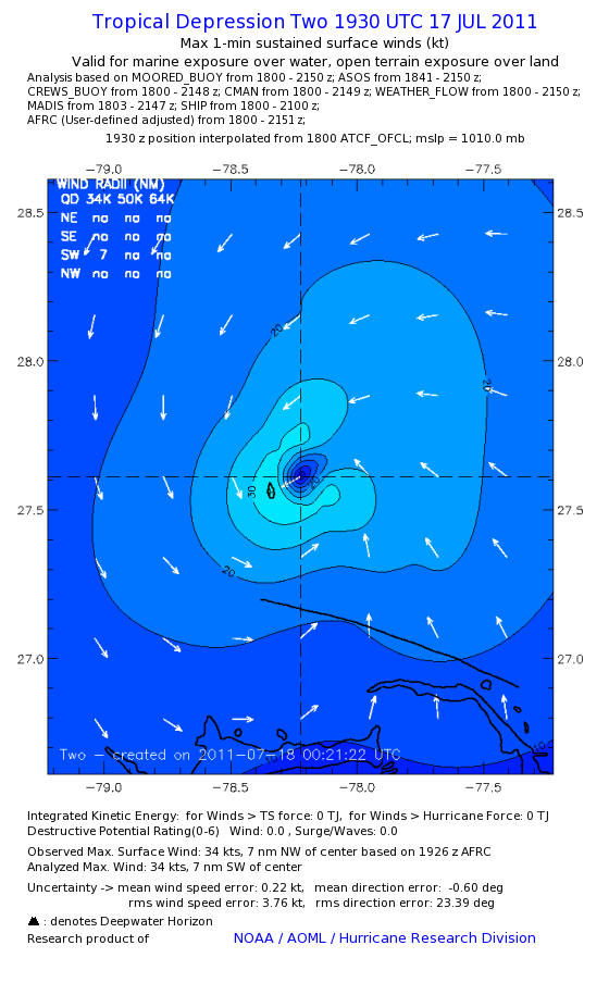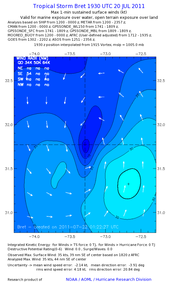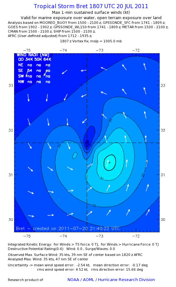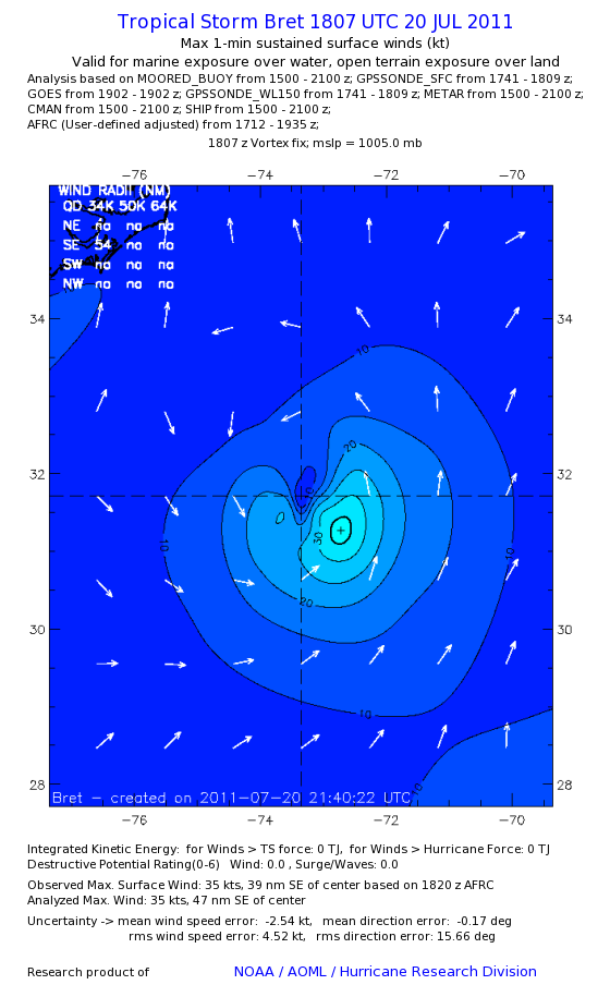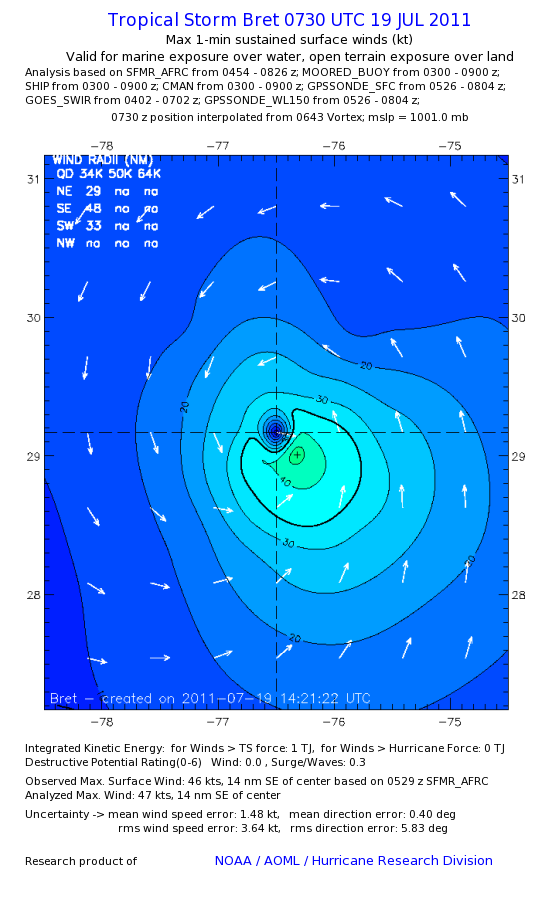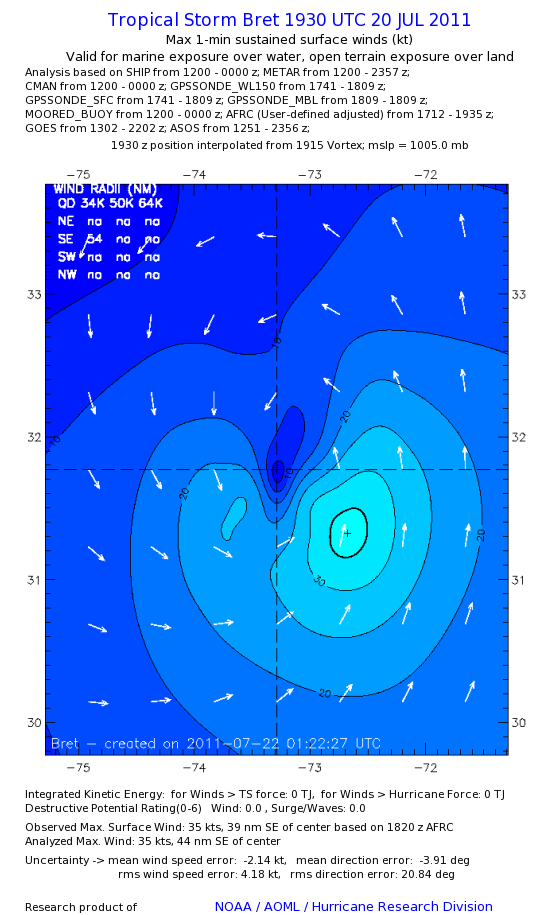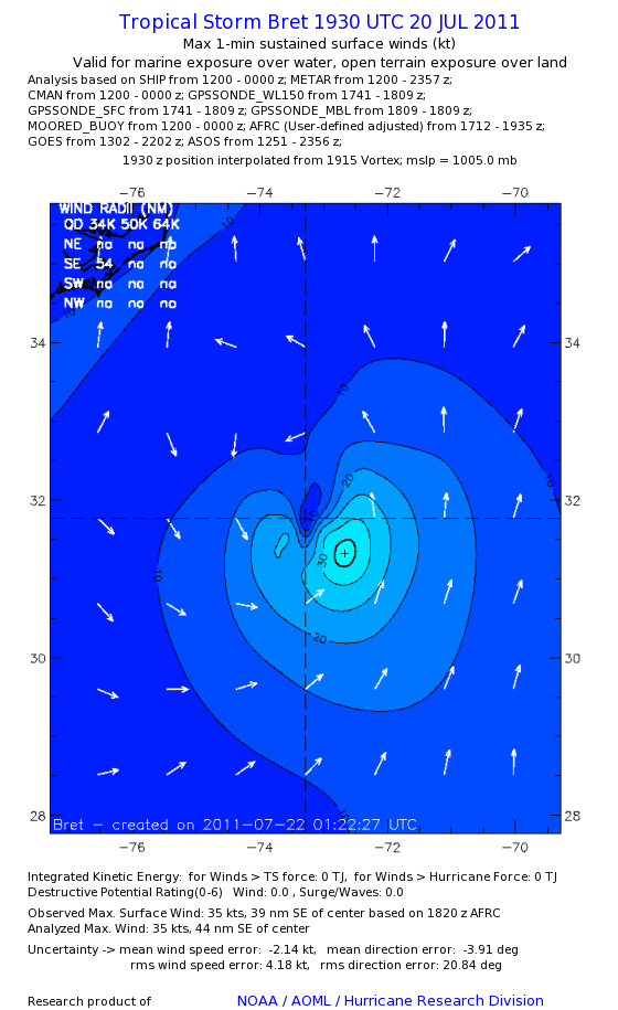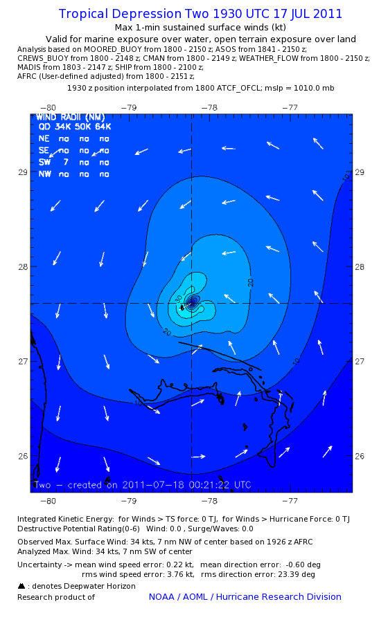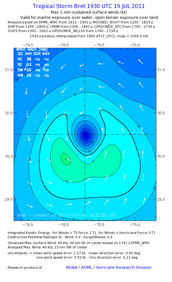 As a public service we are hosting the legacy H*wind archive that was formerly available through NOAA. Most of the archive was conducted in real-time so data collected after the analysis time were not available. Methods used to conduct the analyses evolved over the years. Grid spacing is on the order of 6 km and maximum domain size varies but is typically 8 x 8 degrees. There are known errors in some of the data coverage, mapping, and gridded products. For more information on the archive please go here. For realtime and post storm analysis of the 2014 season and a revised historical archive go here. |