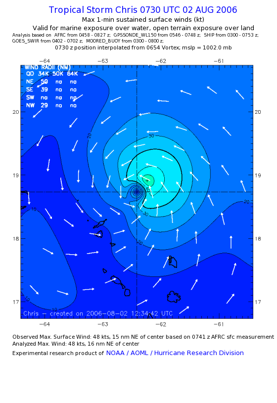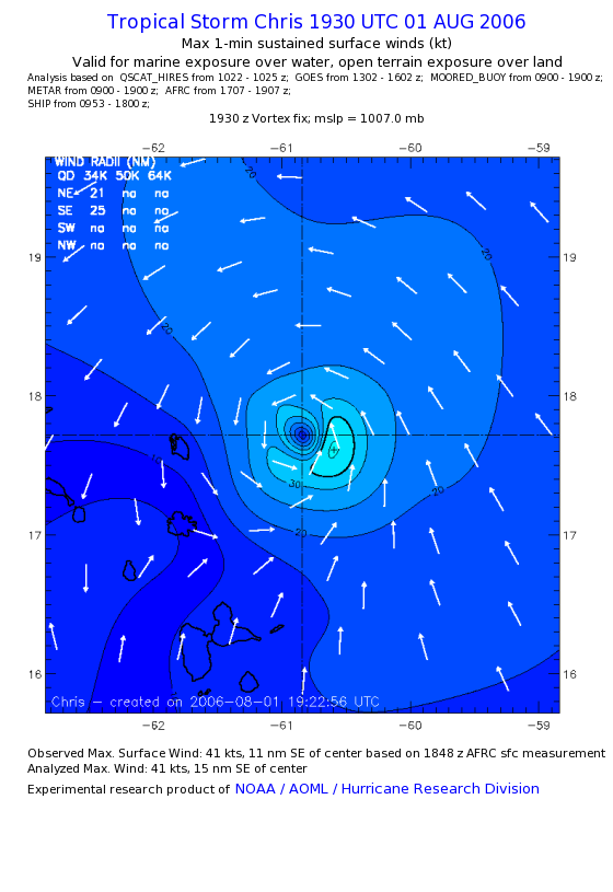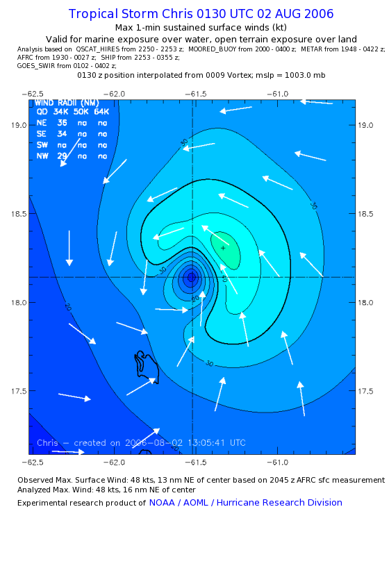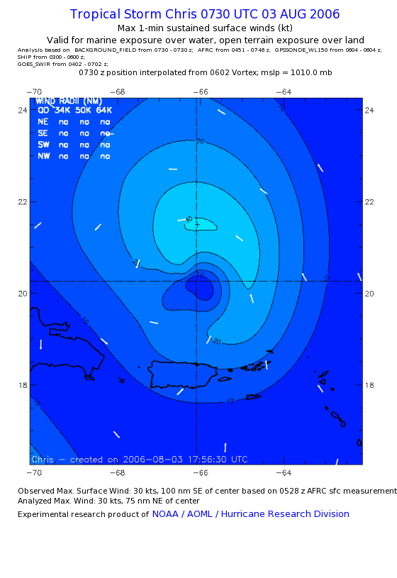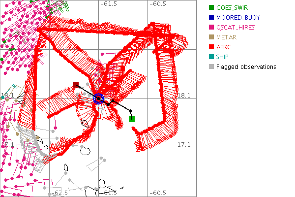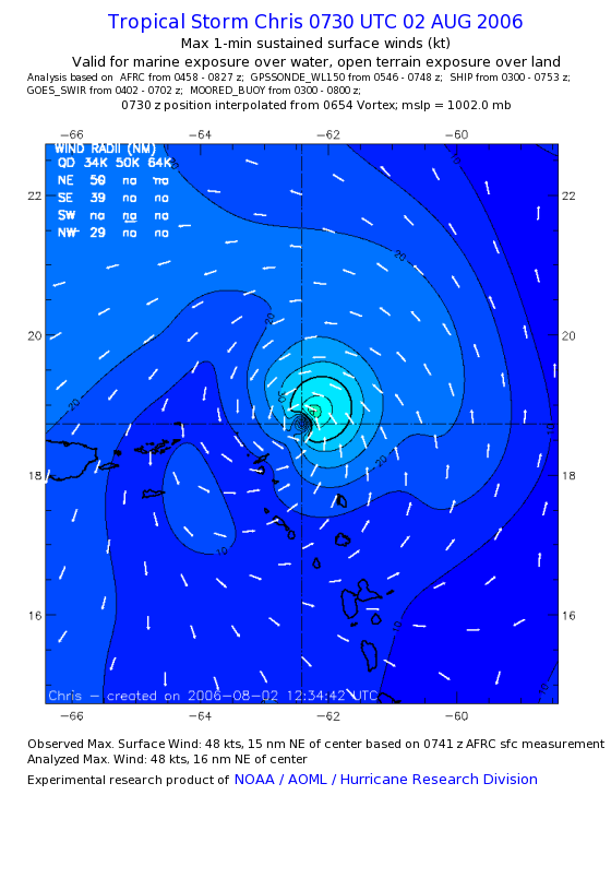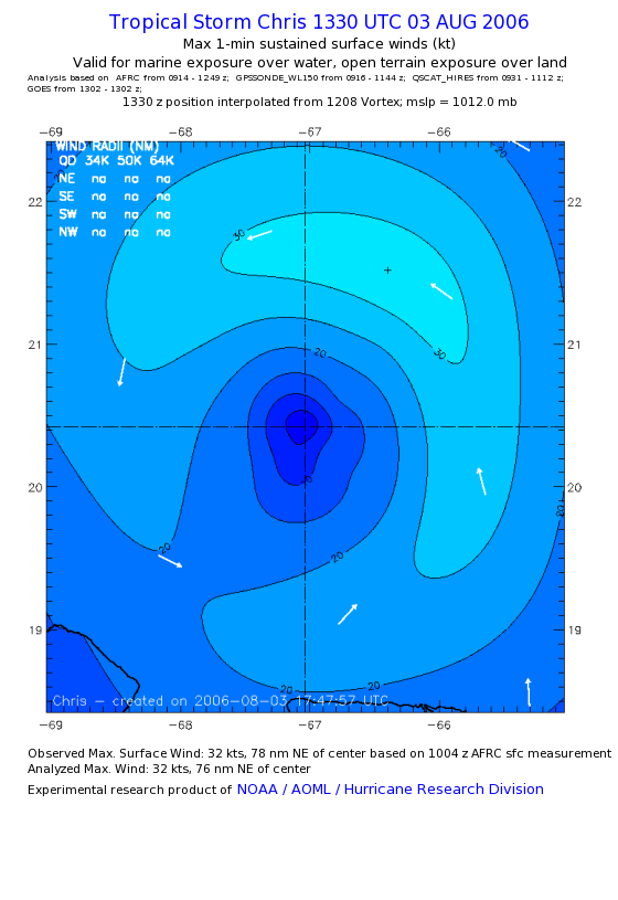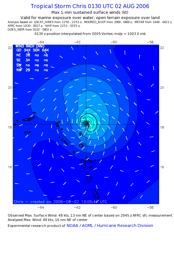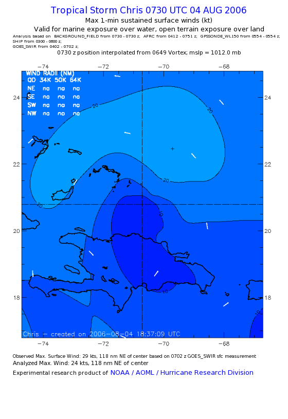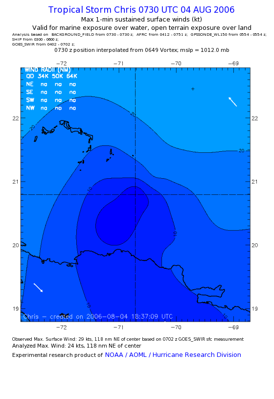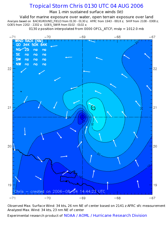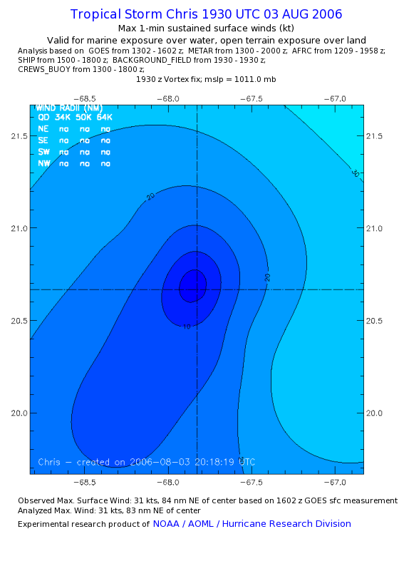 As a public service we are hosting the legacy H*wind archive that was formerly available through NOAA. Most of the archive was conducted in real-time so data collected after the analysis time were not available. Methods used to conduct the analyses evolved over the years. Grid spacing is on the order of 6 km and maximum domain size varies but is typically 8 x 8 degrees. There are known errors in some of the data coverage, mapping, and gridded products. For more information on the archive please go here. For realtime and post storm analysis of the 2014 season and a revised historical archive go here. |