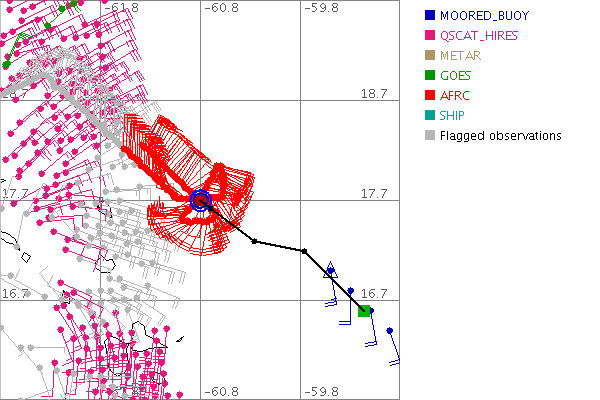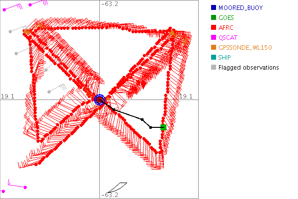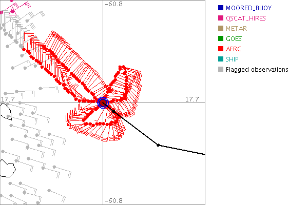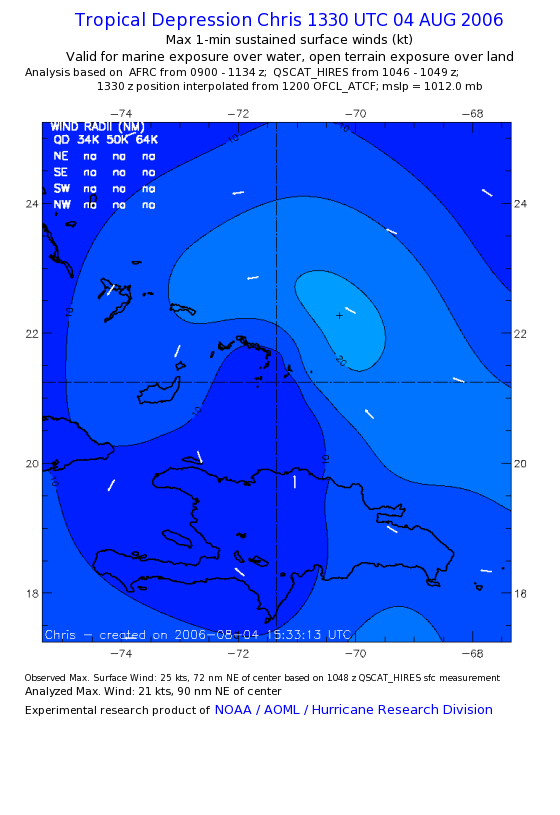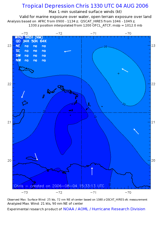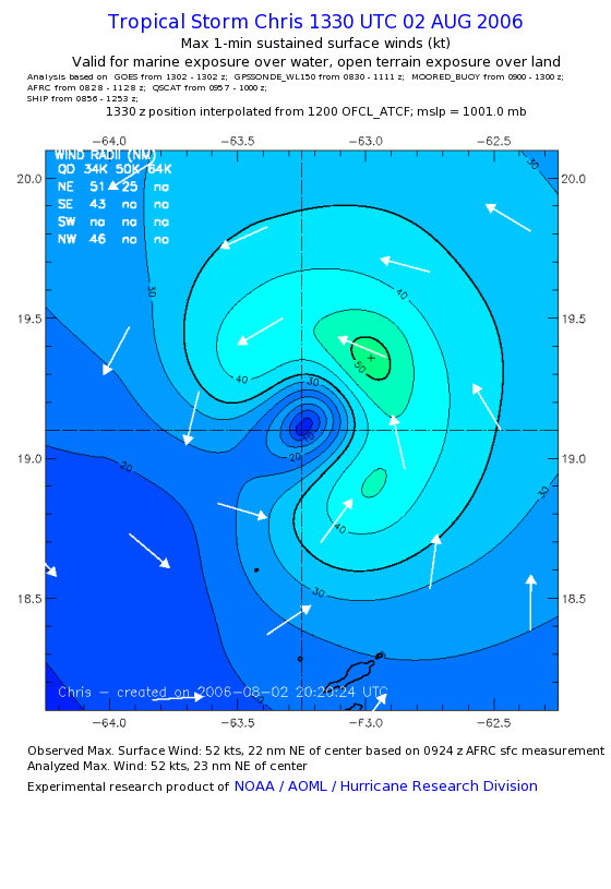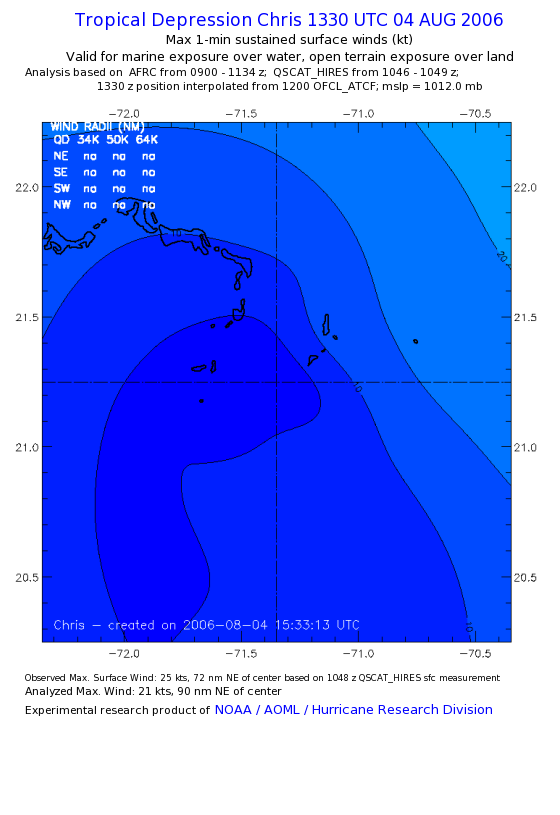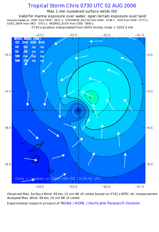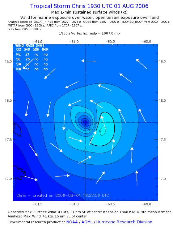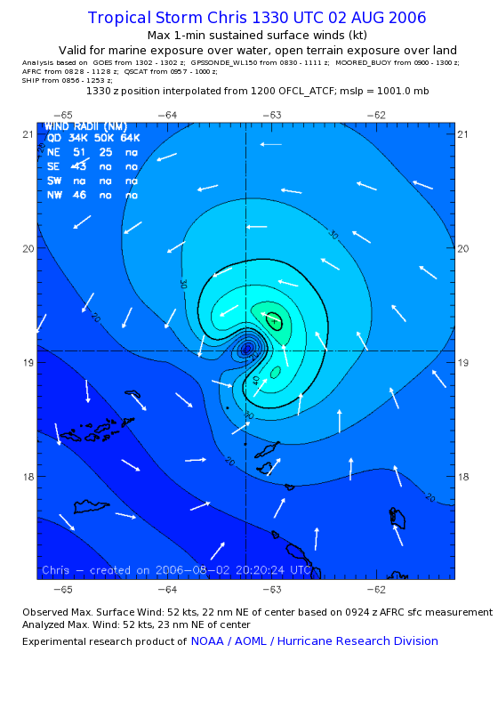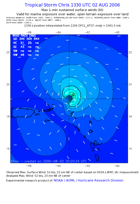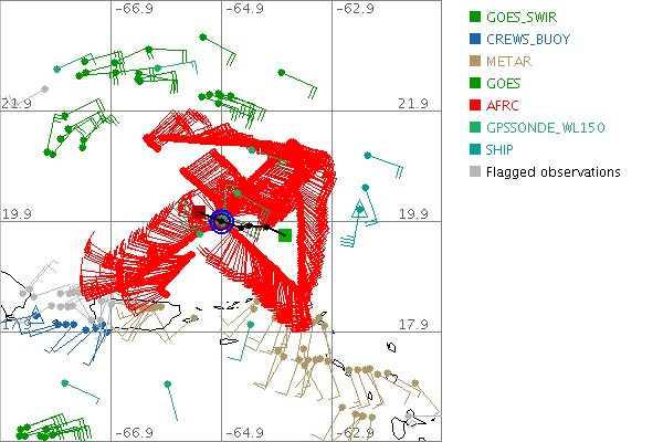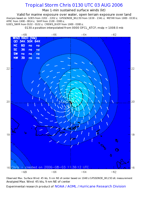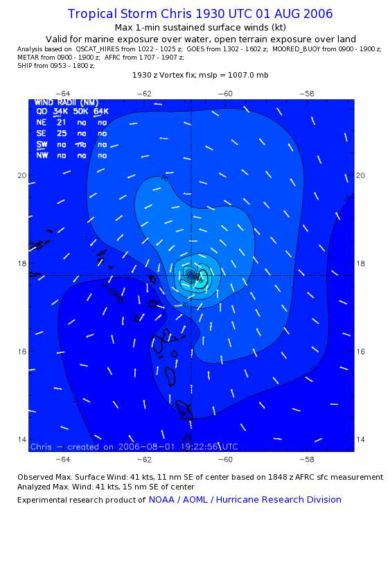 As a public service we are hosting the legacy H*wind archive that was formerly available through NOAA. Most of the archive was conducted in real-time so data collected after the analysis time were not available. Methods used to conduct the analyses evolved over the years. Grid spacing is on the order of 6 km and maximum domain size varies but is typically 8 x 8 degrees. There are known errors in some of the data coverage, mapping, and gridded products. For more information on the archive please go here. For realtime and post storm analysis of the 2014 season and a revised historical archive go here. |
