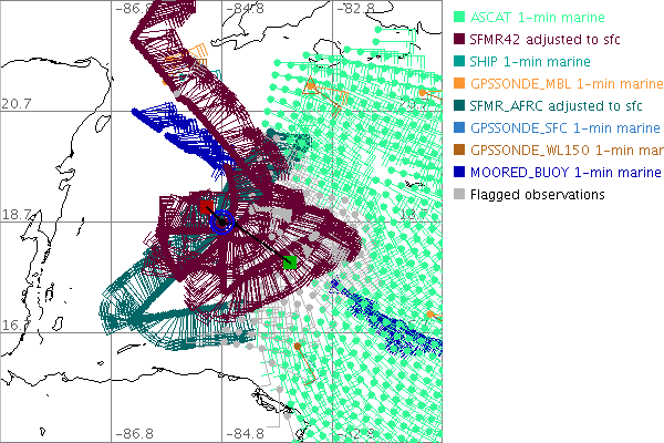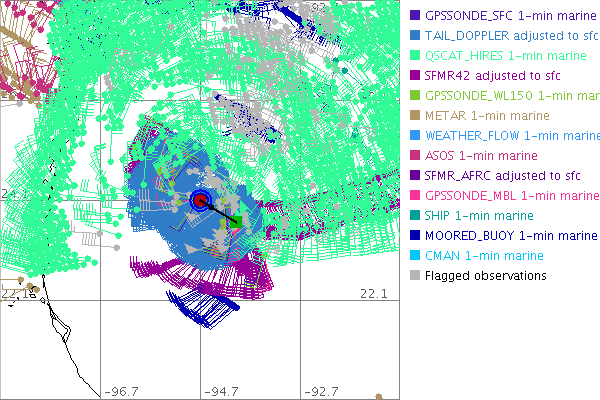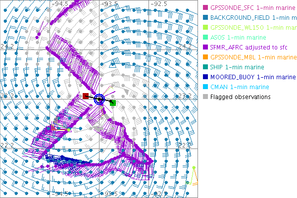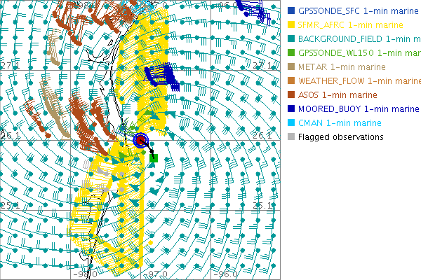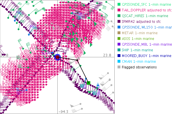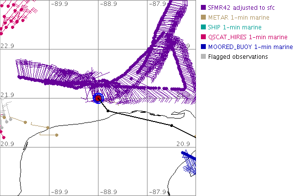 As a public service we are hosting the legacy H*wind archive that was formerly available through NOAA. Most of the archive was conducted in real-time so data collected after the analysis time were not available. Methods used to conduct the analyses evolved over the years. Grid spacing is on the order of 6 km and maximum domain size varies but is typically 8 x 8 degrees. There are known errors in some of the data coverage, mapping, and gridded products. For more information on the archive please go here. For realtime and post storm analysis of the 2014 season and a revised historical archive go here. |