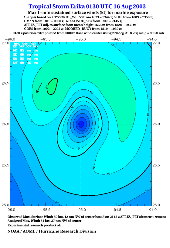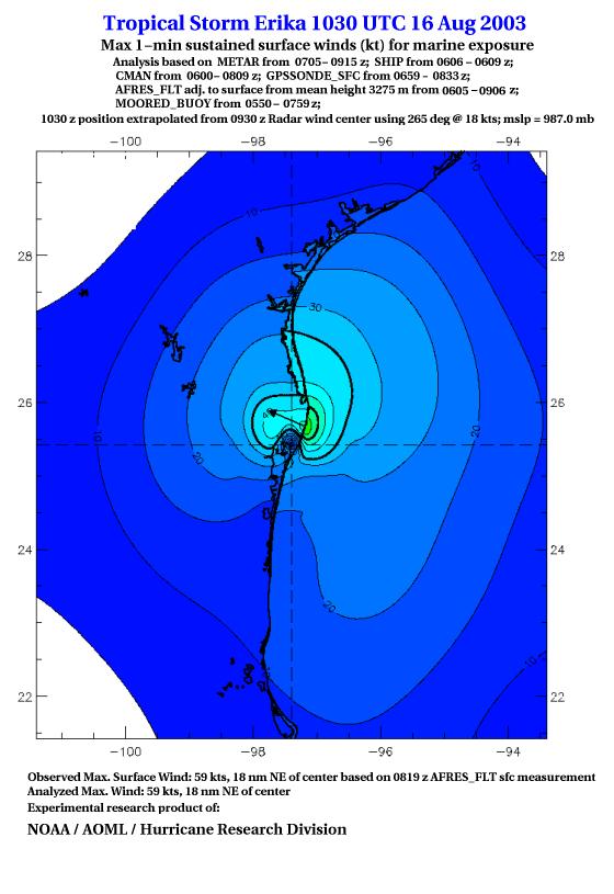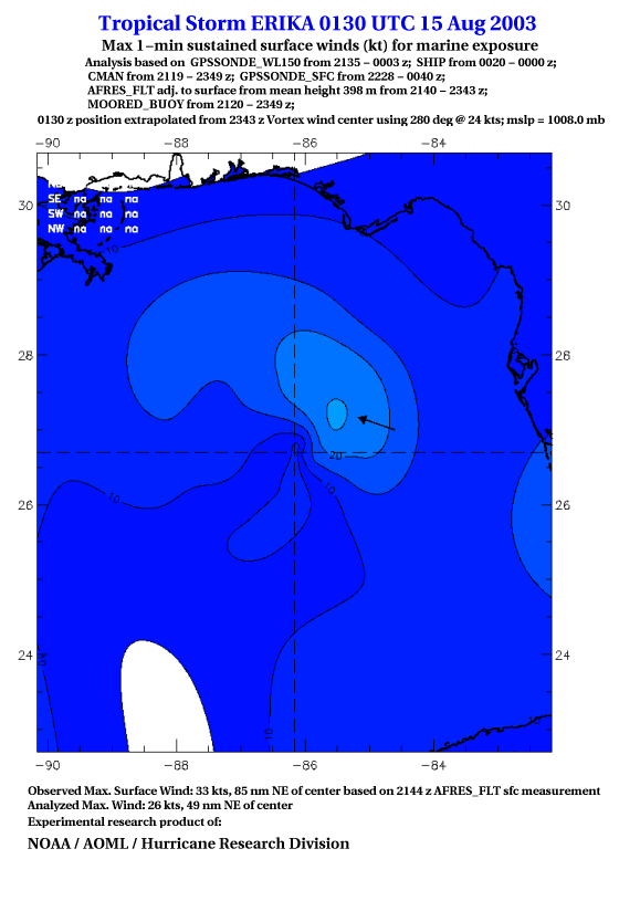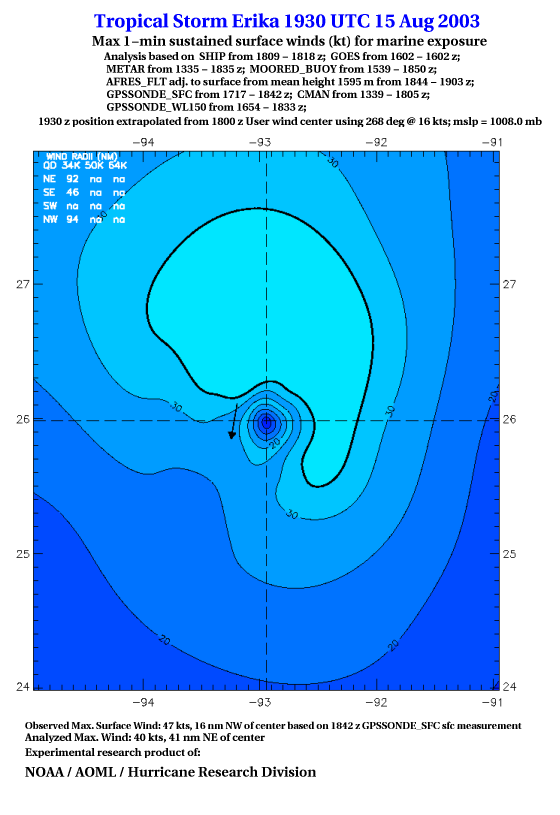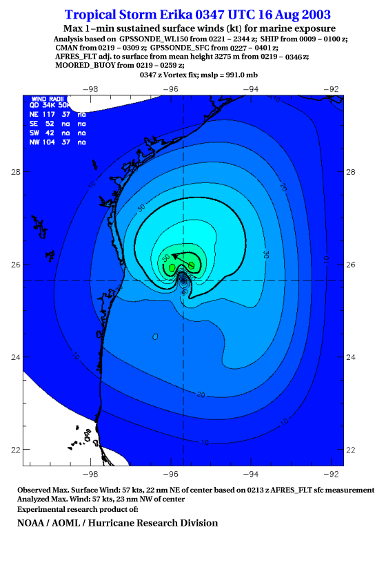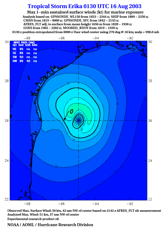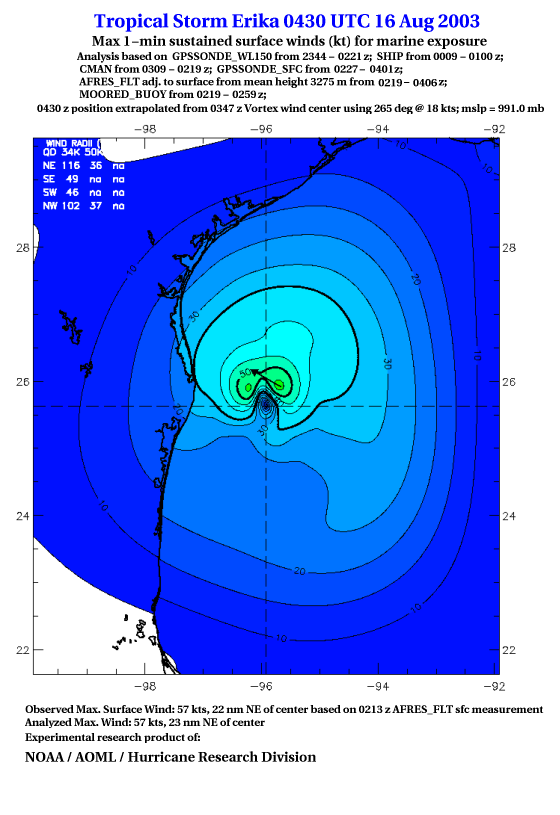 As a public service we are hosting the legacy H*wind archive that was formerly available through NOAA. Most of the archive was conducted in real-time so data collected after the analysis time were not available. Methods used to conduct the analyses evolved over the years. Grid spacing is on the order of 6 km and maximum domain size varies but is typically 8 x 8 degrees. There are known errors in some of the data coverage, mapping, and gridded products. For more information on the archive please go here. For realtime and post storm analysis of the 2014 season and a revised historical archive go here.
