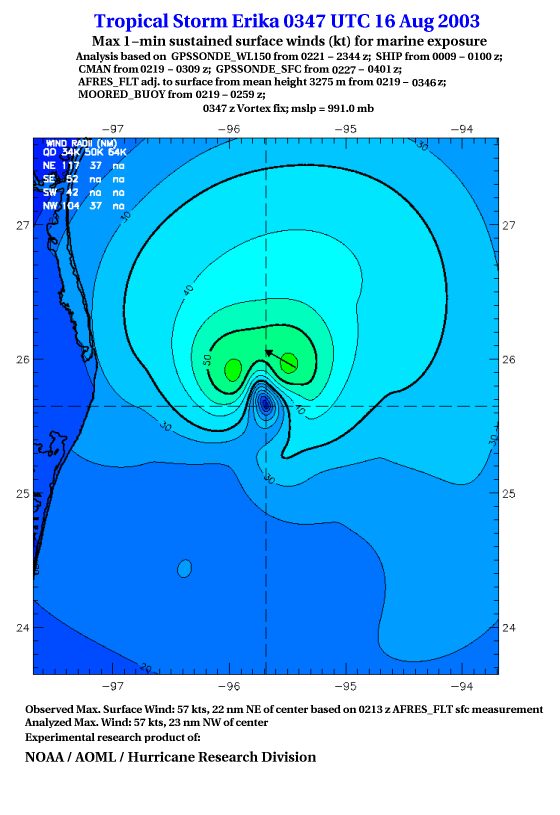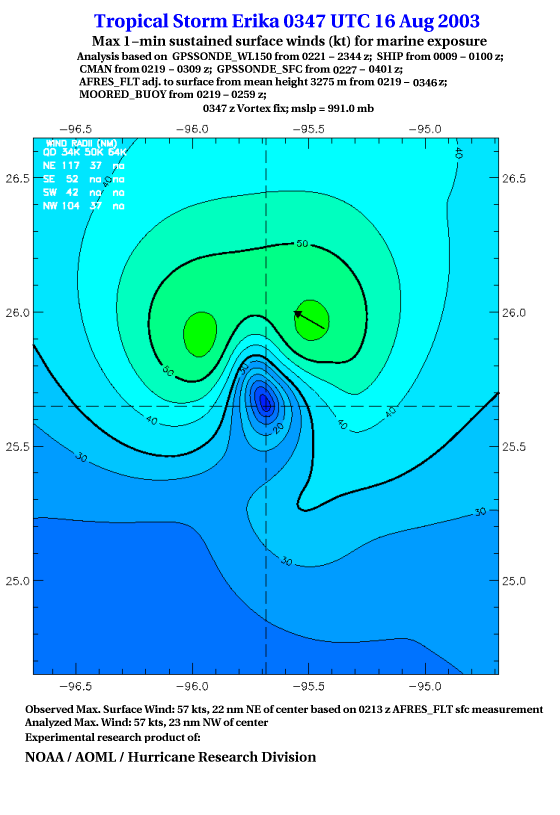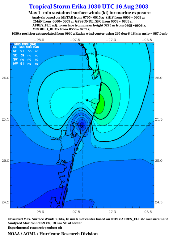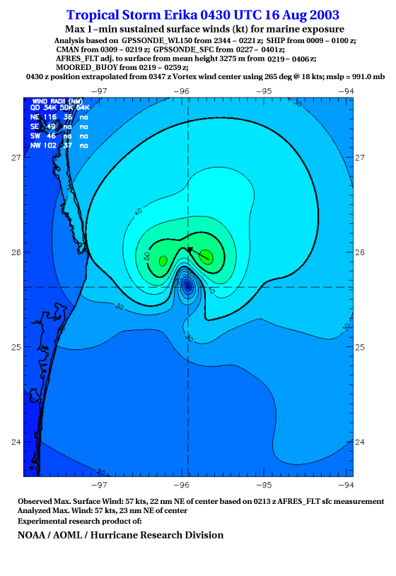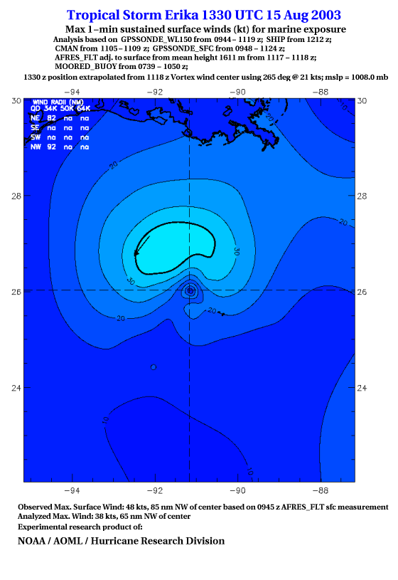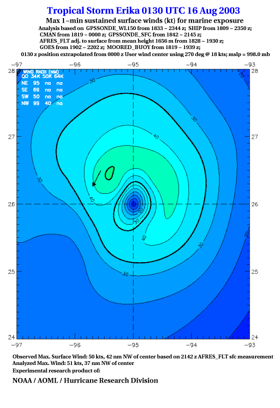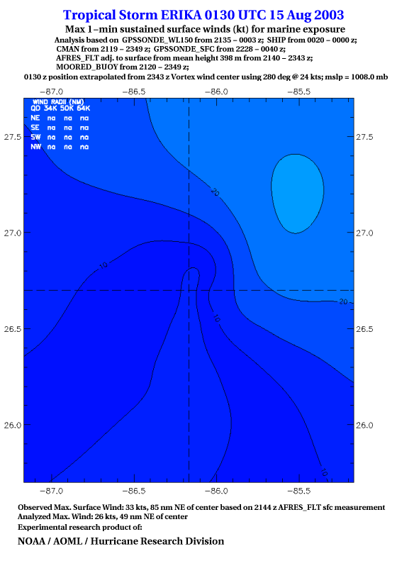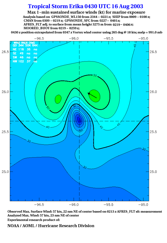 As a public service we are hosting the legacy H*wind archive that was formerly available through NOAA. Most of the archive was conducted in real-time so data collected after the analysis time were not available. Methods used to conduct the analyses evolved over the years. Grid spacing is on the order of 6 km and maximum domain size varies but is typically 8 x 8 degrees. There are known errors in some of the data coverage, mapping, and gridded products. For more information on the archive please go here. For realtime and post storm analysis of the 2014 season and a revised historical archive go here.