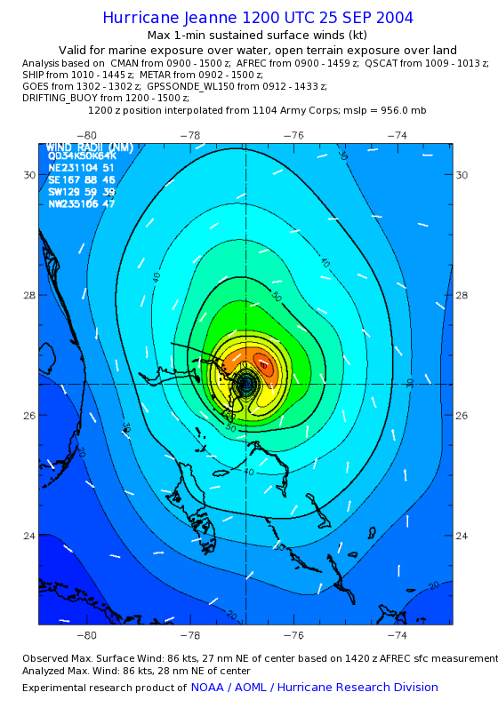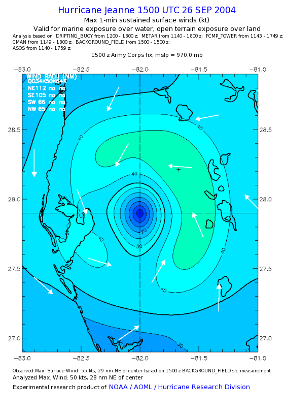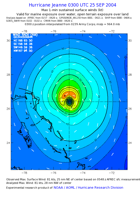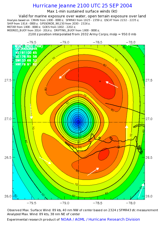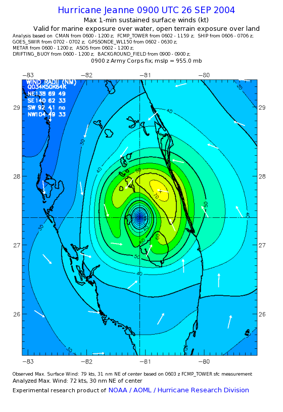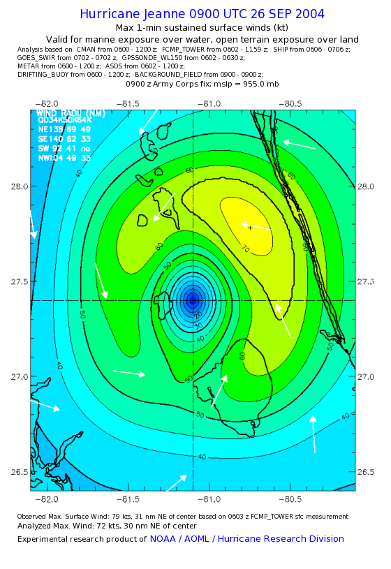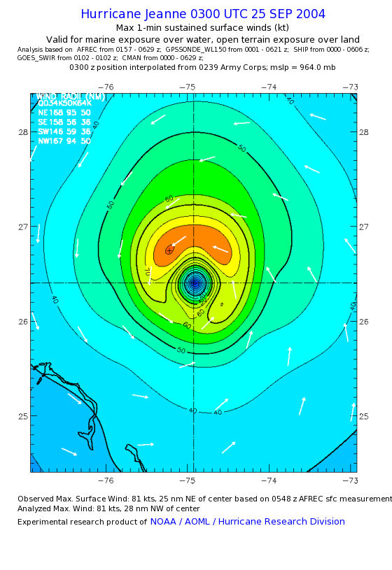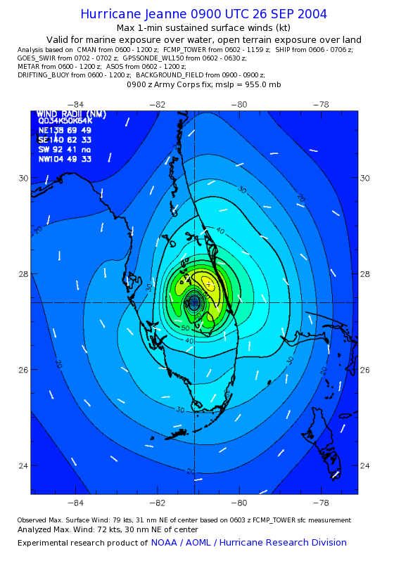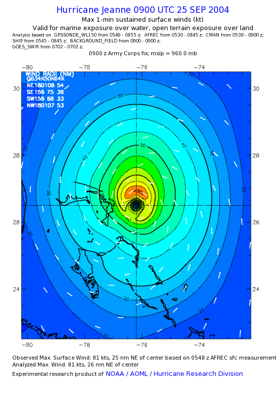 | The following maximum sustained wind swaths for are preliminary results and will be subject to further modifications as new data become available. | |||||||||||