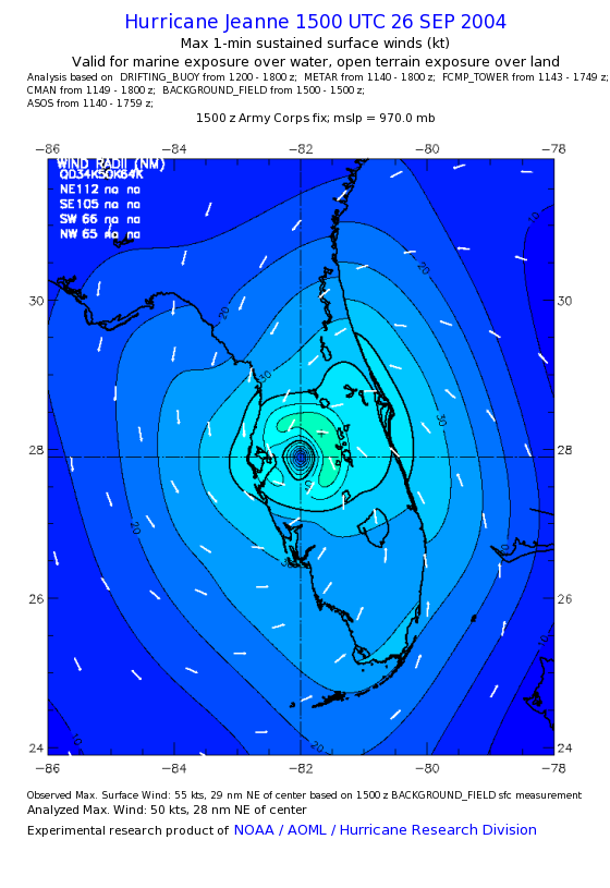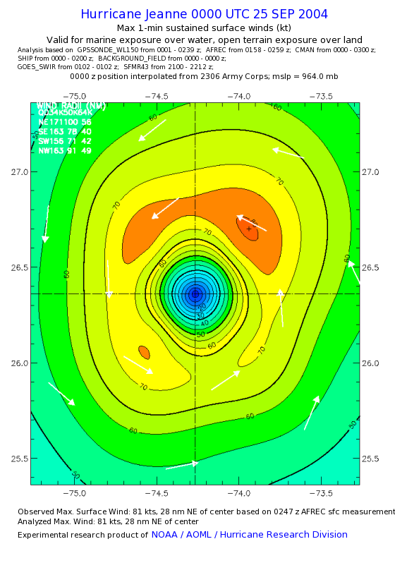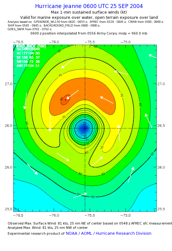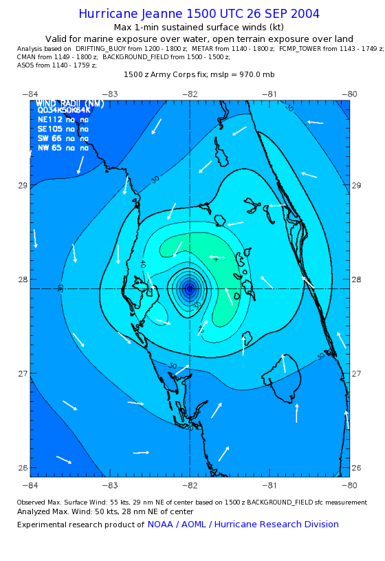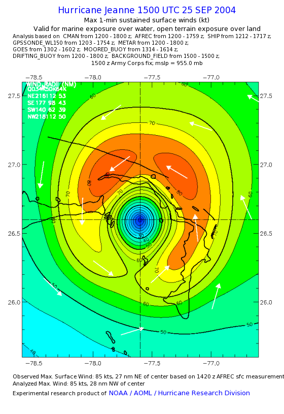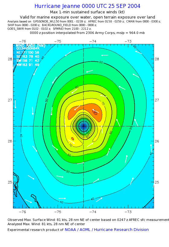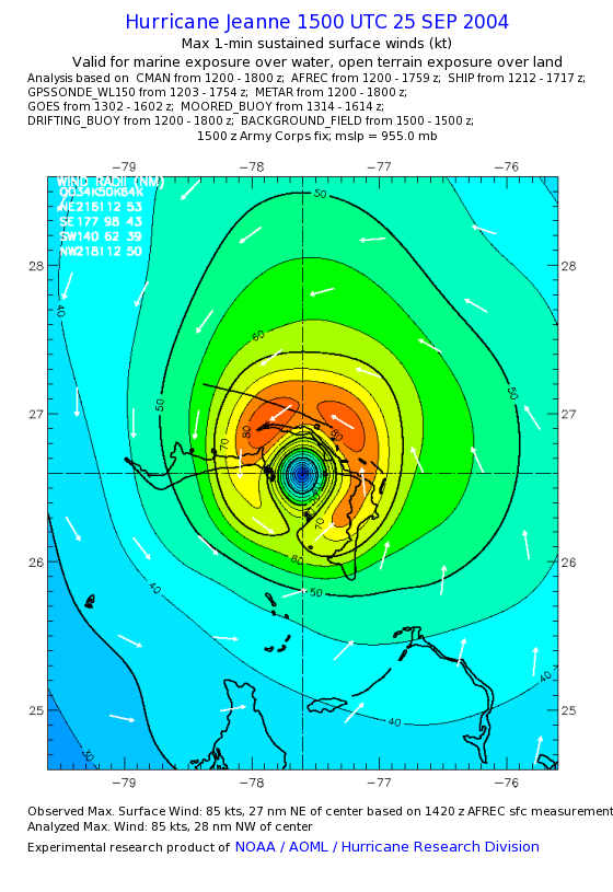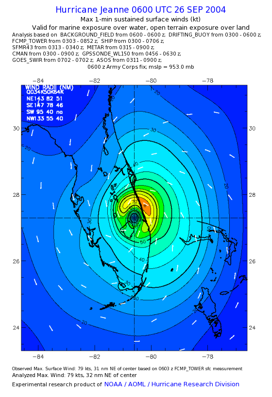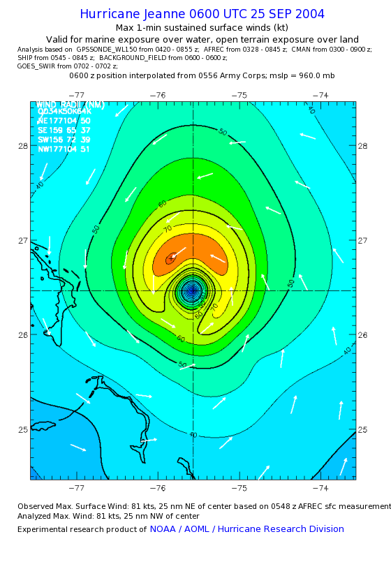 | The following maximum sustained wind swaths for are preliminary results and will be subject to further modifications as new data become available. | |||||||||||