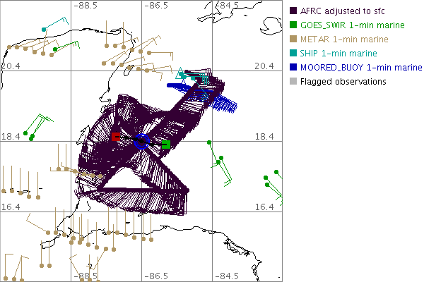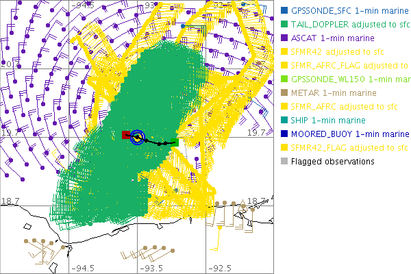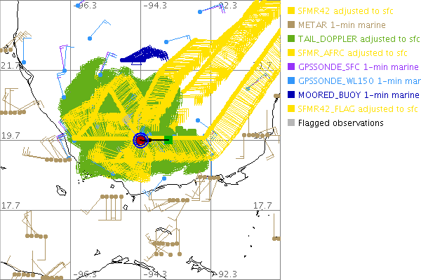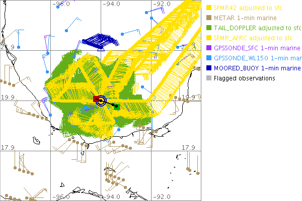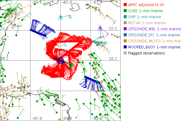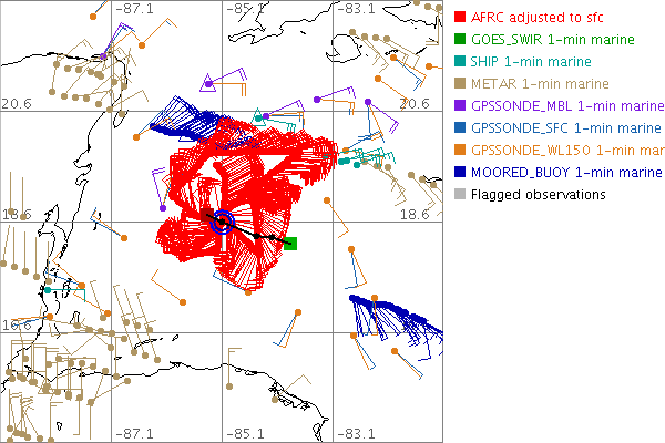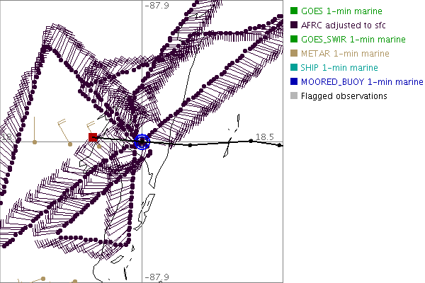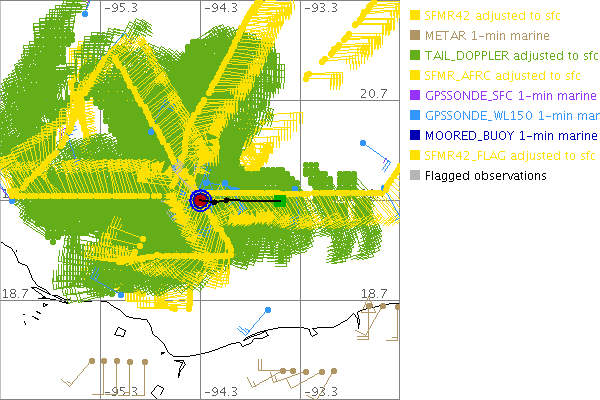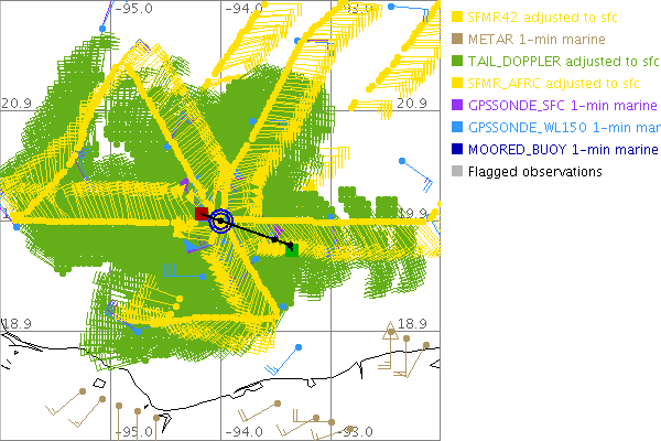 As a public service we are hosting the legacy H*wind archive that was formerly available through NOAA. Most of the archive was conducted in real-time so data collected after the analysis time were not available. Methods used to conduct the analyses evolved over the years. Grid spacing is on the order of 6 km and maximum domain size varies but is typically 8 x 8 degrees. There are known errors in some of the data coverage, mapping, and gridded products. For more information on the archive please go here. For realtime and post storm analysis of the 2014 season and a revised historical archive go here. |