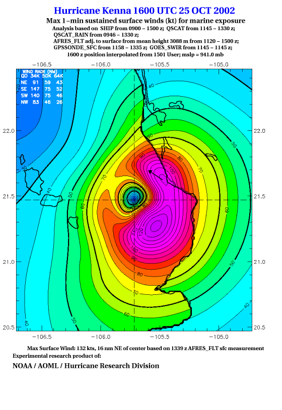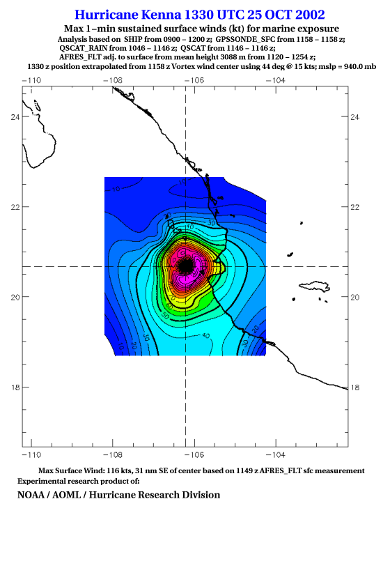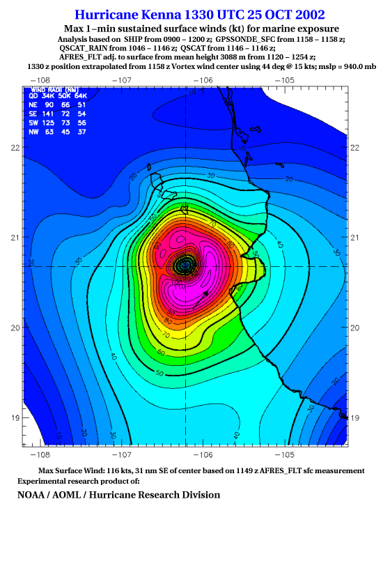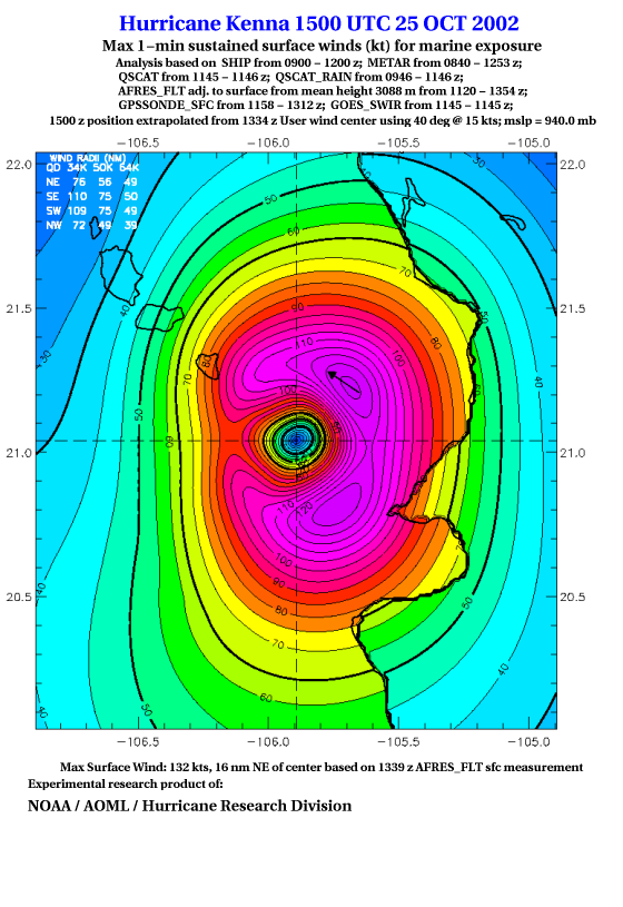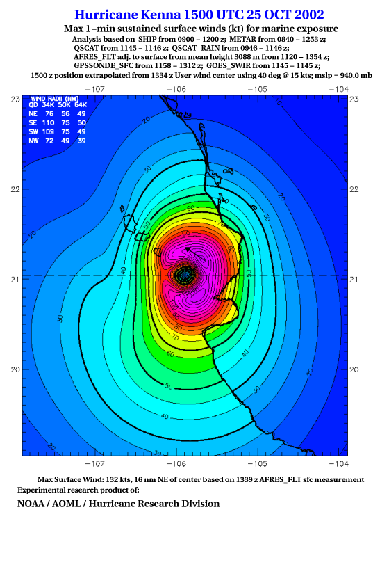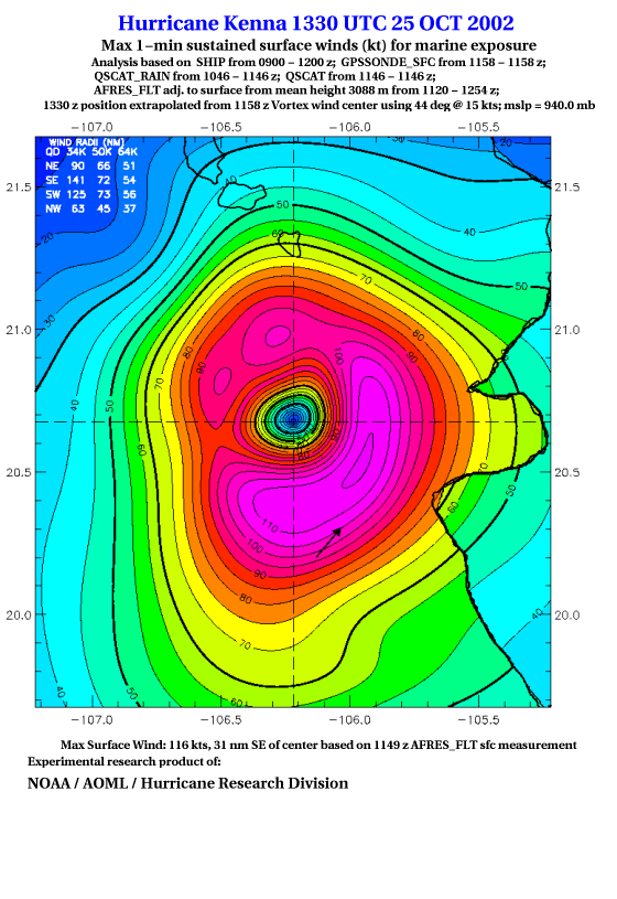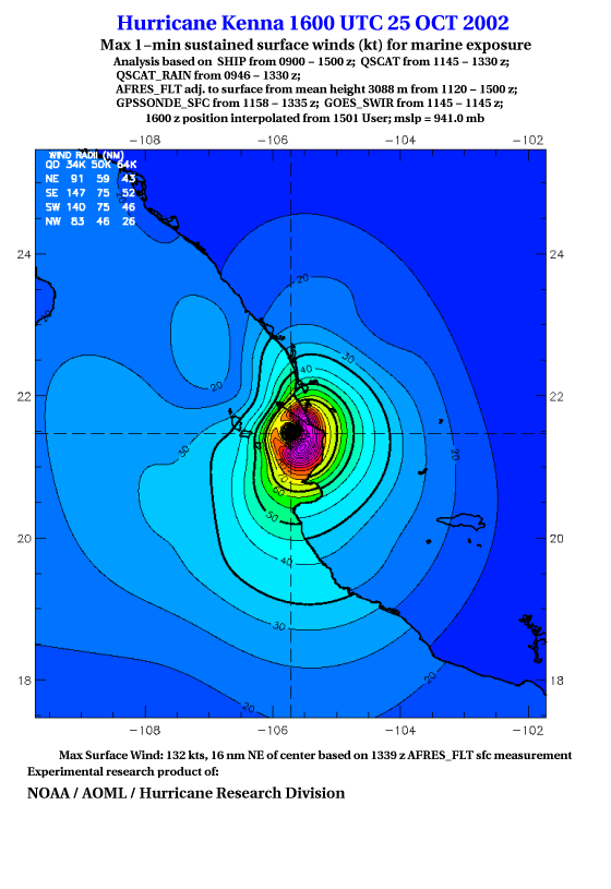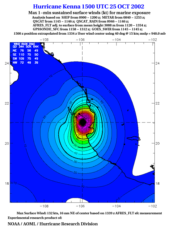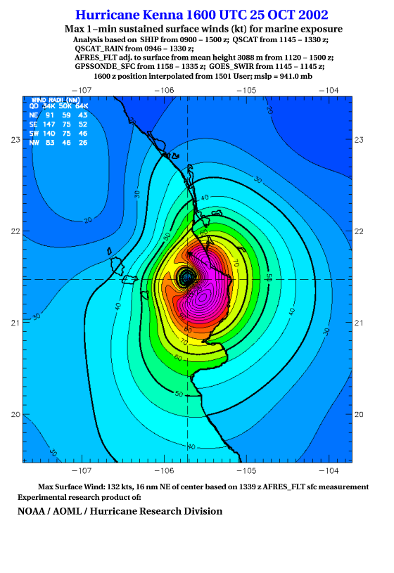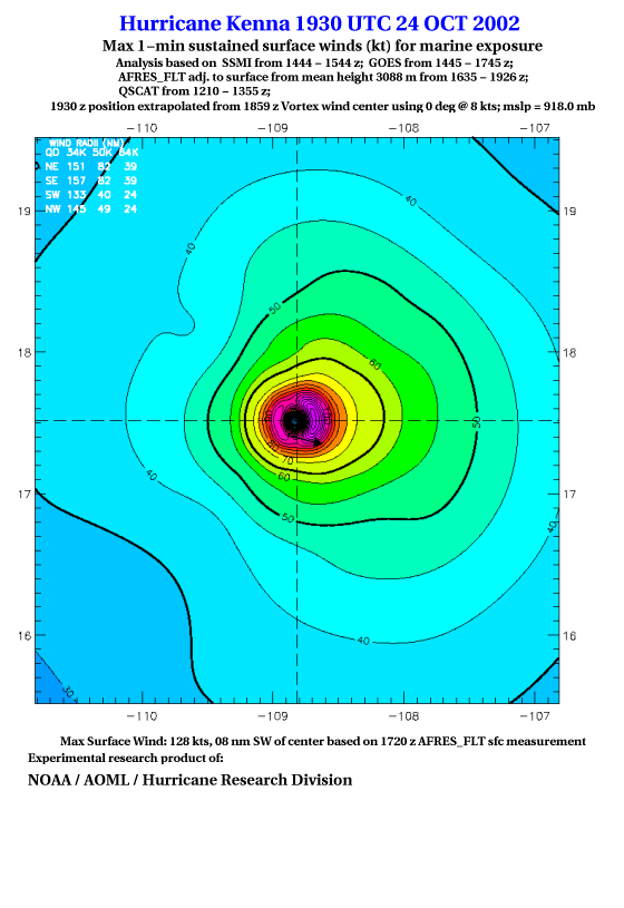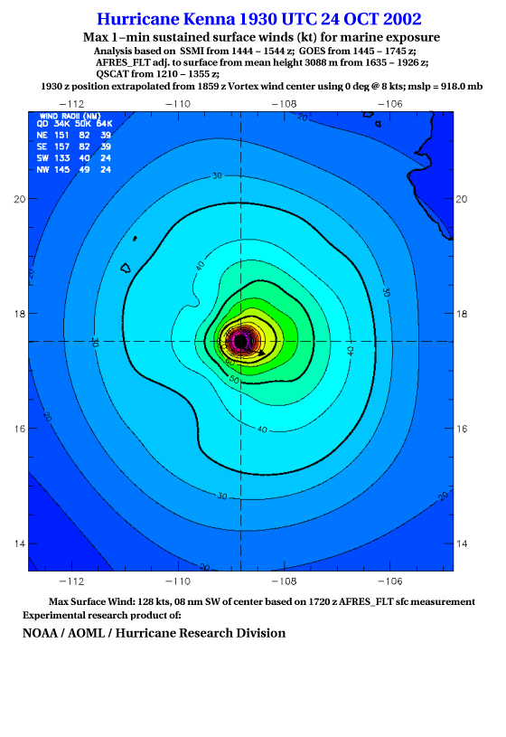 As a public service we are hosting the legacy H*wind archive that was formerly available through NOAA. Most of the archive was conducted in real-time so data collected after the analysis time were not available. Methods used to conduct the analyses evolved over the years. Grid spacing is on the order of 6 km and maximum domain size varies but is typically 8 x 8 degrees. There are known errors in some of the data coverage, mapping, and gridded products. For more information on the archive please go here. For realtime and post storm analysis of the 2014 season and a revised historical archive go here.
